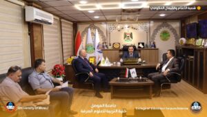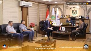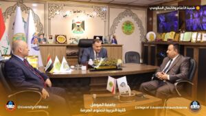 As part of the communication between the General Directorate of Education in Nineveh and the College of Education for Pure Sciences, the Dean of the College of Education for Pure Sciences, Assistant Professor Dr. Jasim Fathi Ali, accompanied by the Assistant Dean for Academic Affairs, Professor Dr. Yasser Yahya Qasim, and the Head of the Quality Assurance Division, Professor Dr. Yasser Shakib Muhammad, visited the General Directorate of Education in Nineveh on Sunday, May 4, 2025. During this visit, they met with the Director General of the Directorate, Mr. Muhammad Ibrahim Aboudi.