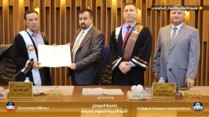 The Dean of the College presented a letter of thanks and appreciation to Professor Dr. Khalil Khidr Abbu from the College of Basic Education, University of Tal Afar, for chairing the discussion committee.