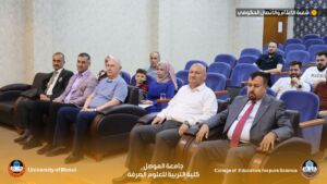 Part of the discussion was attended by the Dean of the College, Assistant Professor Dr.  Jassim Fatehi Ali, the Assistant Dean for Academic Affairs, Professor Dr. Yaser Yahya Qasim, the Assistant Dean for Administrative Affairs, Assistant Professor Dr. Younis Saadi Saeed, and a number of the faculty members from the department.