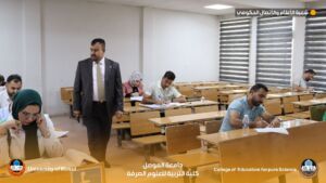 The Dean of the College, Assistant Professor Dr. Jassim Fatehi Ali, accompanied by the Assistant Dean for Academic Affairs, Professor Dr. Yasser Yahya Qasim, conducted an inspection tour of the student examination halls on the first day of the exams on Monday, June 16, 2025, to ensure that all the necessary supplies are available to facilitate the students’ performance in the exams. The Dean, Dr. Ali, praised the efforts made by the teaching staff to ensure the success of the examination process, and he wished the students luck and success.