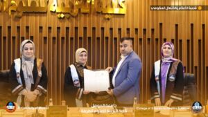 The Dean of the College presented a letter of thanks and appreciation to Assistant Professor Dr. Amal Fattah Ziadan from the College of Basic Education at the University of Mosul for her participation in the student’s discussion.