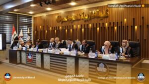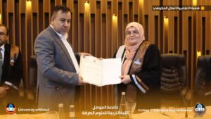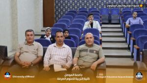 The discussion committee was chaired by Professor Dr. Yousef Jabbar Ismail, and Professor Dr. Hussein Saber Muhammad Ali, Professor Dr. Abl Ahmed Hasan Erdini, Assistant Professor Dr. Yusra Majeed Shihab, and Assistant Professor Dr. Muhammad Hazim Sabry as members, and Professor Dr. Abdul-Aziz Younis Al-Safawi and Assistant Professor Dr. Mira Osama Al-Kateb as both members and supervisors. The Dean of the College presented a letter of thanks and appreciation to Professor Dr. Abd Ahmed Hasan Erdini from the College of Education for Women at Tikrit University and Assistant Professor Dr. Yusra Majeed Shihab from the College of Environmental Sciences and Technologies at Mosul University for their participation in the dissertation discussion of the researcher.