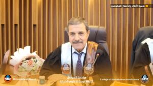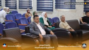Part of the dissertation defense was attended by the Dean of the College, Professor Dr. Jassim Fatehi Ali, the Assistant Dean for Administrative Affairs, Assistant Professor Dr. Younis Saadi Saeed, and a number of faculty members from the department.