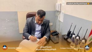 In implementation of the directives of the President of the University of Mosul, Professor Waheed Mahmoud Al-Ibrahimi, the Dean of the College of Education for Pure Sciences, Professor Jassim Fatehi Ali, accompanied by the Administrative Assistant, Assistant Professor Dr. Younis Saadi Saeed, and the Head of the Computer Science Department, Assistant Professor Dr. Muhammad Hazim Al-Kawaz, conducted a field tour on the evening of Thursday, September 11, 2025, to inspect the Civil Defense Guards at the College.
