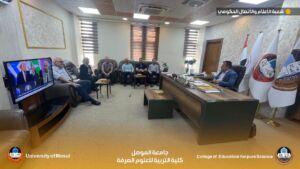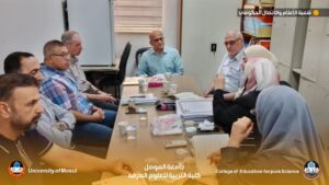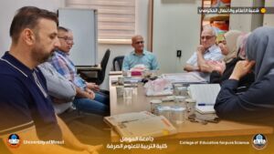 Based on the directives of the President of the University of Mosul, Professor Dr. Waheed Mahmoud Al-Ibrahimi, and the direct instruction of the Chairman of the Central Promotions Committee, Professor Dr. Akram Mahmoud Al-Badu, to visit the sub-committees at the colleges to review the problems they face. In the presence of the Dean of the College of Education for Pure Sciences, Professor Jassim Fatehi Ali, a joint meeting was held between the members of the Central Promotions Committee and the Sub-Promotions Committee at the College of Education for Pure Sciences on Tuesday, October 14, 2025, to discuss the latest developments in the academic promotion system. The meeting also addressed the mechanism of the electronic promotion system, inquired about some of the obstacles encountered in the processing of applications, and found the necessary solutions to overcome the obstacles facing faculty members applying for promotion, the academic committees in the departments, and the sub-committee.