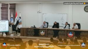 Under the patronage of the esteemed President of the University of Mosul, Professor Dr. Waheed Mahmoud Al-Ibrahimi, and under the supervision of the esteemed Dean of the College of Education for Pure Sciences, Professor Dr. Jassim Fatehi Ali, the University Psychological Counseling Division, in cooperation with the Graduate Studies Division at our college, held an orientation seminar for graduate students accepted for the academic year 2025-2026. The seminar was titled “Psychological and Administrative Support for Graduate Students.” The seminar was held on Monday, October 6, 2025. Presented by: