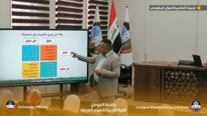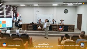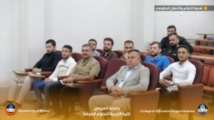 Under the patronage of the esteemed President of the University of Mosul, Professor Dr. Waheed Mahmoud Al-Ibrahimi, and under the supervision of the esteemed Dean of the College of Education for Pure Sciences, Professor Dr. Jassim Fatehi Ali, the University Psychological Counseling Division, in cooperation with the Graduate Studies Division at our college, held an orientation seminar for graduate students accepted for the academic year 2025-2026. The seminar was titled “Psychological and Administrative Support for Graduate Students.” The seminar was held on Monday, October 6, 2025. Presented by: