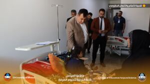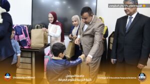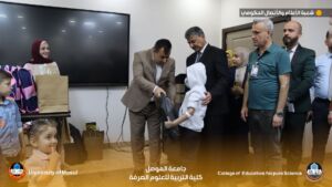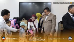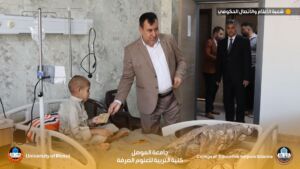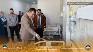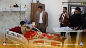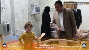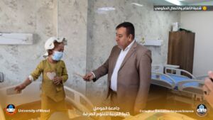 Under the close supervision and follow-up of the Dean of the College, Professor Dr. Jassim Fatehi Ali, the Volunteer Work Committee of the College of Education for Pure Sciences visited Al-Hadbaa Specialized Hospital on Wednesday, October 15, 2025. A group headed by the Dean of the College visited the Al-Hadbaa Specialized Hospital to provide financial support and medical supplies previously agreed upon with the hospital administration to support thalassemia and leukemia patients. The visit, which took place at 10:00 a.m., also included the presentation of gifts and toys to sick children hospitalized at the hospital, bringing a sense of joy and hope to their faces. The visiting group was received by the Director of Al-Hadbaa Specialized Hospital, Dr. Midian Muhammad Fawzi, his assistants, and a number of doctors and administrative staff from the hospital. This initiative was warmly welcomed by the hospital administration, represented by the director and medical staff, as well as by the university community, who considered this a turning point in embodying the university’s humanitarian and social role. We extend our sincere thanks and appreciation to everyone who contributed, donated, and supported this charitable project. We pray to God Almighty to grant all patients a speedy recovery.