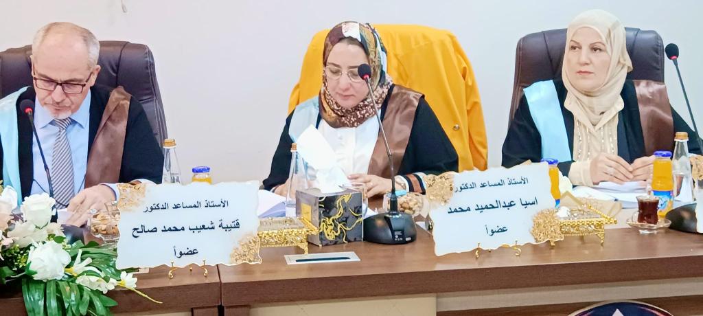 PH.D. Dissertation Viva in the College of Education for Pure Science entitled ” Molecular investigation of proteins isolated from Saccharomyces cerevisiae and their inhibitory effect on phytopathogenic fungi and bacteria “The College of Education for Pure Science, University of Mosul, has done the PH.D. Dissertation Viva entitled ” Molecular investigation of proteins isolated from Saccharomyces cerevisiae and their inhibitory effect on phytopathogenic fungi and bacteria “,On Wednesday, October 26, 2022, the respected Dean of the College, Assistant Professor Dr. Qais Ismail Ibrahim, the Honorable Scientific Associate and Administrative Associate, the Honorable Head of the Department of Biology, and a number of the college’s teachers were attended the viva. This study, presented by the PH.D. Student Hiba Hadi Taha Al-Dabbaghin the Department of Biology, included isolation 110 local isolate of yeasts from different sources such as different types of fruits, soil and orange leaves in Mosul / Iraq. High percentage frequency for yeast Saccharomyces cerevisiae and diagnosed this yeasts depend on phenotypic, microscopic and biochemical tests, and the diagnosis of some of them was confirmed using a Vitek system. As for the two isolates of S. cerevisiae their was confirmed using molecular diagnosis by Polymerase Chain Reaction ( PCR) with specialized primers for gene of Internal Transcribed Spacer (ITS). It was noted that one bundle was separated for each isolate with a size of 550-650 base pairs. When studying the sequence of the nitrogenous bases of DNA the presence of sites of genetic variation or heterogeneity when compared with the gene ITS In the NCBI and you gave the code OM760491 and ON168448 respectively as will as diagnosed Aureobasidium pullulans molecularly and given the code OK614102.1 at the World Genebank.The study also included isolation and identification of many fungi from different types of soils in the city of Mosul / Iraq depend on their phenotypic and microscopic characteristics. They isolated 161 isolates, and the highest percentage of fungi frequency was 26.7% for the fungus Aspergillus niger, and the lowest percentage frequency is 0.6% for each of the Bipolaris sp.,Fusarium oxysporum,The soil of garlic plant was the highest fungal diversity, where 22 isolates, and the lowest soil with fungal diversity was strawberry soil, where the number of isolates reached 2 isolates.Two local isolates of Agrobacterium were also obtained from the University of Baghdad, it was diagnosed by biochemical tests and other standard isolations, and a microscopic diagnosis was made using a Gram stain and that noted them Gram-negative bacillus, as well as a test of its pathogenicity on carrot discs by using a injury method, as it was observed that tumors appeared Crown gall on the surface of carrot discs were two isolates of local bacteria Agrobacterium tumifaciens because of its contain the plasmid that induced the formation of tumors, and the appearance of capillary Hairy roots on carrot discs after infection with standard bacteria Agrobacterium rhizogenes 15834 rife because it contain a plasmid that induced the formation of Hairy roots. It was also moleculer diagnosis for the two local isolates type A. tumifaciens by using polymerase chain reaction (PCR), The appearance of single and non-dispersed bundles as evidence of the purity and high concentration of DNA and the amplification was using specific primers for gene 16s rRNA and the bands with a size of 1250 base pairs appeared for both isolates.The assay resistance and sensitivity for Antibiotic were performed on two isolates of bread yeast S.cerevisiae and three isolates of Agrobacterium under study, it was noted that two yeasts isolates are resistant to antibiotics Rifampicin, Tetracycline, Gentamicin, Ciprofloxacin, Roxythrompicin, Erythromycin and Cefotaxime,It was sensitive only Nystatin antibiotic. As for three isolates Agrobacterium, it showed resistance to the following antibiotics such as Rifampicin,Tetracycline ,Erythromycin,Ciprofloxacin,Roxythrompicin and Nystatin also sensetive with Gentamicin and Cefotaxime.The result of test a Cross-antagonism between S.cerevisiae with types of pathogenic bacteria such as Agrobacterium was that isolate 2 of bread yeast was more effective on bacteria, as it inhibited the three types of bacteria compared with isolate 1 of bread yeast in which there was no inhibition of the isolate A.rhizogenes and a low inhibition of the isolateA.tumifaciens1 but very good inhibition of A.tumifaciens 2.On the other hand test the effect cruid filtrate of S. cerevisiae on plant pathogenic fungi It was observed that the percentage of inhibition of yeast 2 higher than yeast 1 on the three pathogenic fungi Alternaria alternata, Aspergillus niger and Fusarium solani with inhibition ratio 65.83, 64.03 and 76.83% Respectively, the highest effect of both filters was on F.solani.It was shown from the results of the microplate test experiment of raw filtrate of bread yeast on plant pathogenic bacteria Agrobacterium by dilution method to determine the minimum inhibitory concentration Microplate MIC AssayThe higher the concentration of the filtrate, the greater the inhibition of bacteria Agrobacterium of the three types, Yeast filtrate 2 was more effective on bacteria than Yeast filtrate 1 and more inhibiting occurred for the isolation.A.tumifaciens1Less discouraging was isolation A.rhizogenes When estimating the minimum inhibitory concentration (MIC)Minimum Inhibitory ConcentrationFor leaching of bread yeast on bacteria, it was found that the fourth dilution of 6.25 mg / ml is the minimum inhibitory concentration for three bacterial isolates were inhibited by the two types of bread yeast filtrate. This study is the first of its kind to use bread yeast to inhibit Agrobacterium.It was detection of the active substances in the filtrate of bread yeast S.cerevisiae by Using a high-performance liquid chromatography HPLC 
