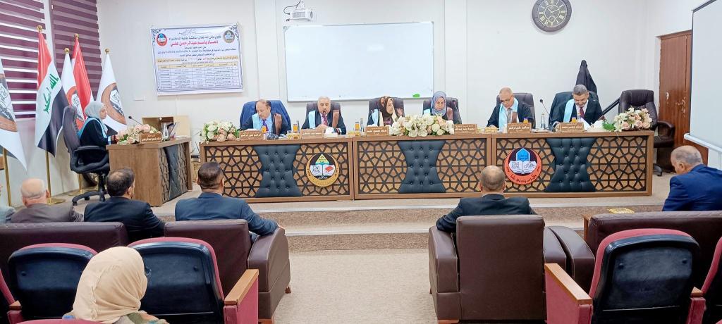 PH.D. Dissertation Viva in the College of Education for Pure Science entitled ” The use of some Nanomaterials in the Fight Against the major worm Galleria mellonella L. And its Effect on the Histological Structure of some Areas of the Body “The College of Education for Pure Science, University of Mosul, has done the PH.D. Dissertation Viva entitled ” The use of some Nanomaterials in the Fight Against the major worm Galleria mellonella L. And its Effect on the Histological Structure of some Areas of the Body “,On Sunday, November 13, 2022, the respected Dean of the College, Assistant Professor Dr. Qais Ismail Ibrahim, the Honorable Scientific Associate and Administrative Associate, the Honorable Head of the Department of Biology, and a number of the college’s teachers were attended the viva. The aim of this study, presented by the PH.D. Student Doaa Basim Abdul Rahman Ali in the Department of Biology, was conducted to find out the effect of nanomaterials of zinc oxide nanoparticles (ZnONPs) and titanium dioxide (TiO2NPs) at concentrations 100, 500, 1000 and 5000 ppm for both, as well as using spores of the bacteria Bacillus thuringiensis at concentrations 106, 107,108 and 109cells. / ml, to know the effectiveness of the above materials in affecting the vitality and control of the insect Galleria mellonella L., which attacks the waxy bases of honey bees Apis mellifera . The previous treatment also caused a significant death rate in the larval and pupal stages, which reached 78.70 and 64.88%, respectively, in the treatment of nano-zinc oxide at a concentration of 5000 ppm, The treatment of B. thuringiensis spores at a concentration of 106 cells/ml caused a death rate of 82.100 and 100. 00% for both stages.In this study, the larval stage was treated with nanomaterials and spores of the bacteria B. thuringiensis. The treatment caused a significant prolongation in the duration of the two instars, and a significant increase in the percentage of killing in the two instars.In this experiment, the effect of larval treatment on the vitality of the females of the first generation was studied. In this study, the pupae were also treated with nanomaterials and spores of the bacteria B. thuringiensis, and this treatment had a clear effect on its vitality, as most of the treatments resulted in a significant death of the pupae that reached 100% in the nano zinc oxide treatment at a concentration of 100 ppm, while it decreased Significantly to 38.86% in the B. thuringiensis spores treatment with a concentration of 109, and both treatments were significantly different from the control treatment by 5.28%, and these treatments (the pupae treatment) caused a significant reduction in the number of emerging insects. The previous treatment also affected the percentage of death for the larval and pupae stages, which reached the highest percentage of 55.92 and 32.33%, respectively, in the treatment of titanium dioxide concentration of 5000 ppm The treatment also caused a significant reduction in the number of emerging insects, which amounted to 30.66 insects. In this study, the attractive and repellent effect of nanomaterials and spores of the bacteria B. thuringiensis used was also known, and it appeared that they had a clear effect, as the titanium dioxide treatment gave a concentration of 100 ppm, an expulsion rate of 70%, and an equilibration rate that reached(-44.7).The Viva committee was chaired by Prof Dr. Badia’a Mahmod Selim / University of Zakho /College of Science and the membership of Prof Dr. Munif Abd Mustafa / University of Mosul / College of Science, Assist Prof Dr. Abdel Jabbar Khalil Ibrahim / University of Mosul / College of Agriculture & Forestry ., Assist Prof Dr. Ibrahim Khalil Ibrahim / University of Mosul / College of Education for Pure Science, Assist Prof Dr. Sohaira Waleed Abdullah /Salahaddin University-Erbil / College of Basic Education and under the supervision and membership of Prof Dr. Adnan Moosa Muhammed / University of Mosul /College of Education for Pure Science.
