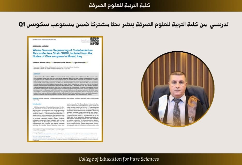 Assistant Professor Dr. Ghazwan Qasim Hasan, from the College of Education for Pure Science, Department of Biology, in collaboration with Ms. Shaymaa Yaseen Taha and a researcher from Saint Joseph University, published a scientific paper [Read More]