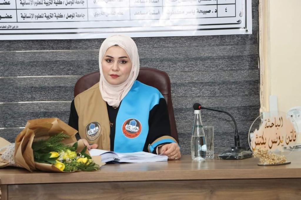The Department of Educational and Psychological Sciences at the Faculty of Education for Humanities at the University of Mosul discussed the master’s thesis entitled (Strategies of cognitive emotional organization and their relationship to the affirmative behavior of students of the University of Mosul) by the student (Faten Younis Pickch) in the Department of Educational and Psychological Sciences, on Wednesday, 9/11/2022, part of which was attended by Prof. Dr. Hazem Thanoun Ismail Al-Sabawi, Dean of the College and a number of faculty teachers.