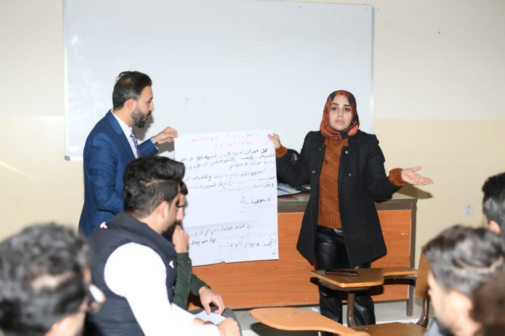 (The future of human resource jobs in the light of artificial intelligence techniques).It was presented by the Lect. Asmaa Khaled Gerges Al-Taie; a Lecturer in the Geography Department, on Tuesday, for the period 26-27 December 2022. Part of it was attended by the Dean of the College of Education for Humanities Prof. Dr. Hazim Dhannon Ismail Al-Sabawi, the Head of the Geography Department, Prof. Dr. Suhaib Hasan Khader, and a number of college teachers , staff and third-year students. t The workshop touched on the concept of artificial intelligence (AI) in terms of speed and high efficiency in business performance, and helps to make better decisions and provides a higher level of automation and the ability to develop and grow, and creates a large number of jobs that humans have not practiced before, all of which are related to application development Technology, programming, computer science and digital security at the current level. As for the future level, people will not stop finding alternative and renewable jobs.The workshop included three main axes in which it reflected the achievement of the goals that must be achieved.* The first axis