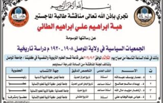 The college of education for humanities, department of history, discussed a thesis on Political Associations in Mosul State 1908-1920 - a Historical Study, on 3/9/2024 A part of it was attended by the dean, head [Read More]