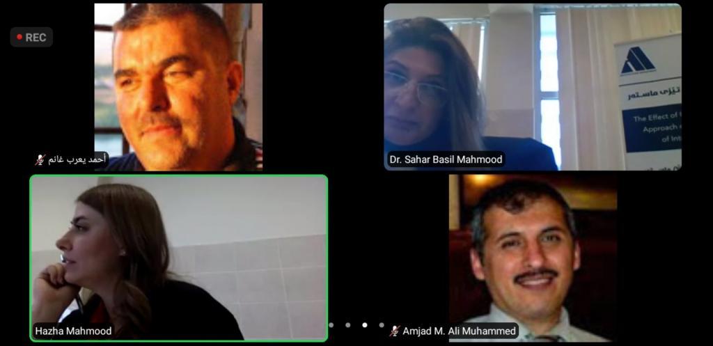 The discussionCommittee consisted of : Asst. Prof. Dr.Sahar Basil Mahmoud -President-University ofKoya, Asst. Prof. Dr.Razz Saeed Faraj -Member-Sulaymaniyah University , Dr. Ahmed Yaarub Tohala-member-University ofMosuland, Asst. Prof. Dr.Amjad Mohammed Ali -Supervisor-Sulaymaniyah University.