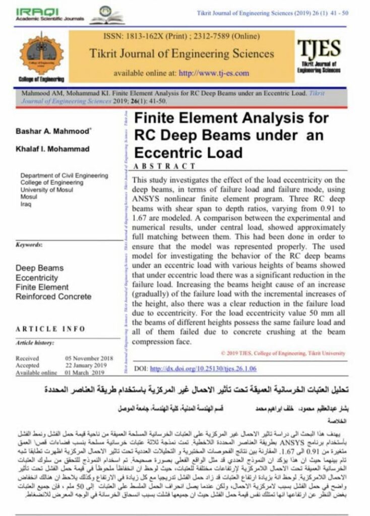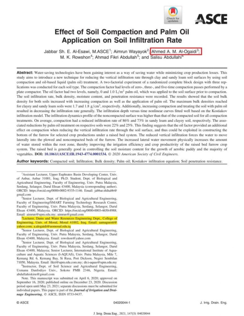 A Scientific Research Publication via a lecturer from Dams & Water Resources engineering department