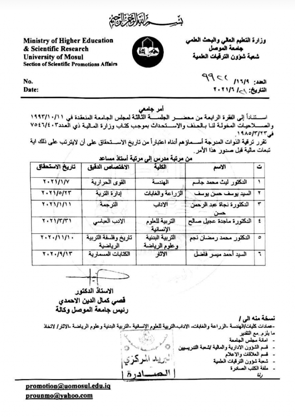 Dr. Laith Mohammed Jasim, The faculty member at Department of Mechatronics Engineering has been promoted to (Assistant Professor) Rank in the field of Thermal Power.College of Engineering’s Members congratulate the Lecturer for the promotion and wish him more scientific brilliance.