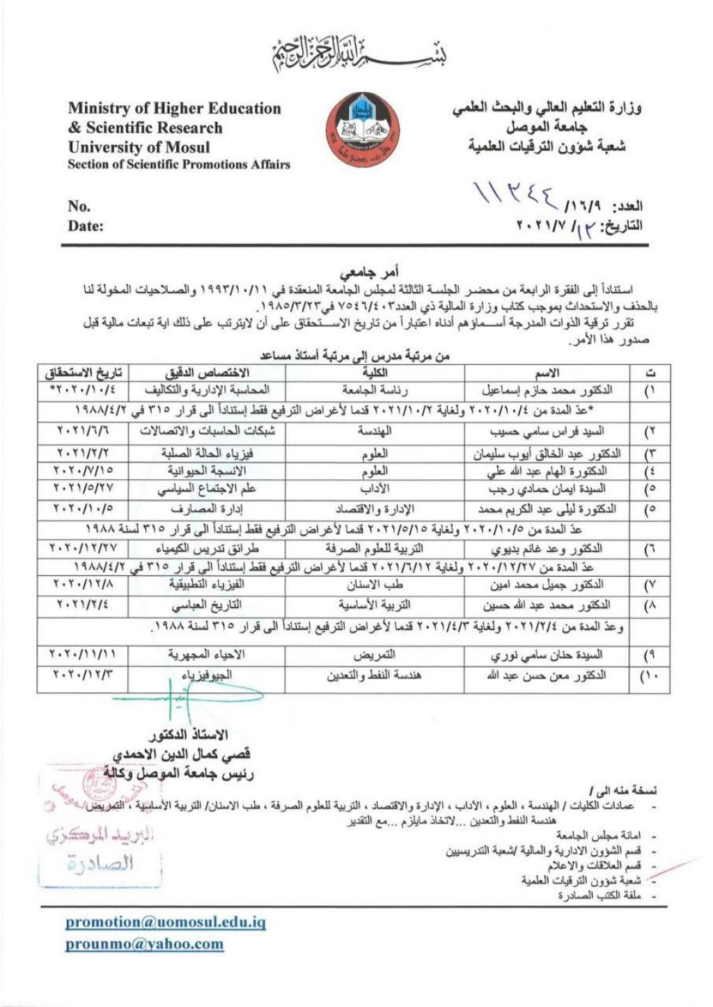 Promotion a Faculty Member to (Assistant Professor) Rank at College of Engineering