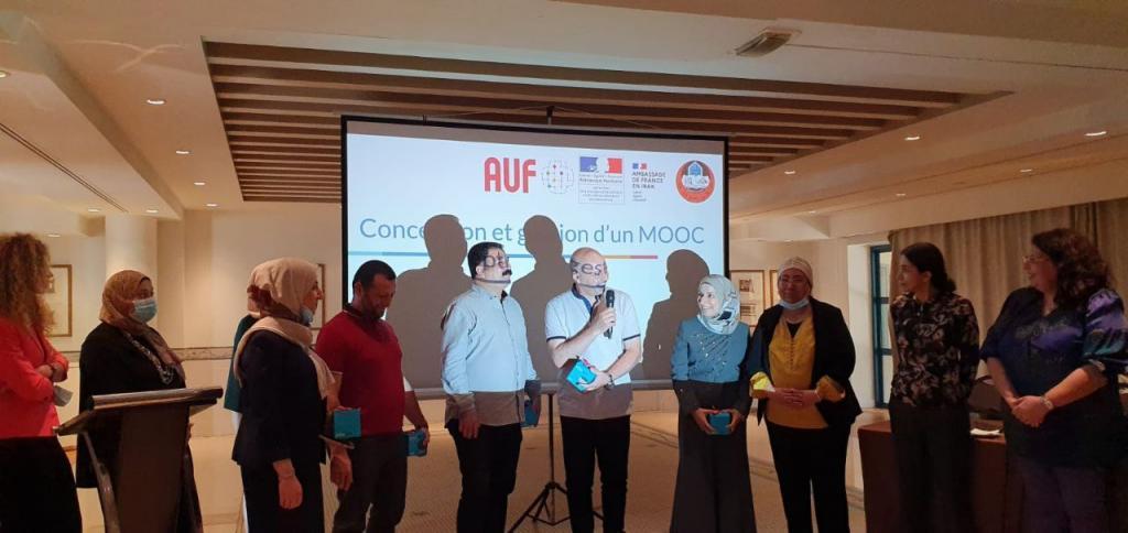 Dr. Khawla Fayyad Mahmoud (Department of Architecture Engineering) and Assist. Lecturer Noor Muzahim Allawi (Department of Mechatronics Engineering) participated in a training course on “Design and Management of aMOOC (Massive Open Online Course)”. Also, Dr. Basman Mahmood Alhafidh, Dr. Rabea Muwaffaq Hachim, Dr. Ina’am Fathi Khudher, the lecturer Ali Mukhlif Ahmed Al-Saegh and the lecturer Hothayfa rabea mohammed from (Department of Computer Engineering) participated in a training course on ” Remote Computer and Internet management and accompanying the learner in the distance learning system”.(53) lecturers and employees from University of Mosul participated in these courses which were held within the framework of the existing cooperation programs between University of Mosul and the Francophone University Agency / the Regional Administration of the Middle East Office / Beirut ( Lebanon ) and Department of Cooperation and Cultural Activity in the Iraqi Embassy in Iraq and with high and precise coordination by Scholarship and Cultural Relations Section / Francophone Corner Unit.The courses lasted for five days from 7/12/2021 to 7/16/2021.The courses included intensive lectures on how to design and management distance learning platformsMassive Open Online Course (MOOC)and about the methodology and how to accompany the lecturer with his colleagues and learners in the distance education system under the supervision of trainers specialized in the field of distance e-learning.At the end of the courses and within the completion of the course accompanying the learner in the distance learning system, the members of the winning team from Department of Computer Engineering / ( Dr. Dr. Basman Mahmood Alhafidh, Dr. Ina’am Fathi Khudher, the lecturer Ali Mukhlif Ahmed Al-Saegh) ranked first among the four participating teams In the final project of the above-mentioned session, the winners were honored with precious souvenirs.