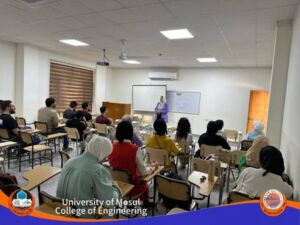 Under the patronage of the President of the University of Mosul, Professor Dr. Waheed Mahmood Al-Ibrahimi, and the supervision of College of Engineering’s Dean , Assistant Professor Dr. Omar Mohammed Hamdoon, and in collaboration with the Human Rights Division at the University Presidency, Assistant Professor Nesma Ma’an Mohammed, Head of the Human Rights Unit at the College, organized a series of workshops starting on Sunday, April 20, 2025, lasting for one week. These workshops included educational lectures aimed at introducing the objectives, mission, and vision of this newly established unit and highlighting its importance in promoting human rights awareness within the university community.