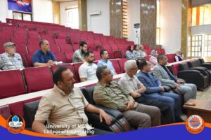 The workshop was attended by the Dean of the College of Engineering, Assistant Professor Dr. Omar Mohammed Hamdoun, the Associate Dean for Administrative Affairs, Dr. Bassam Ihsan Abdul Qader, along with several heads of scientific departments from the College of Engineering and college staff members.