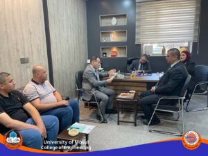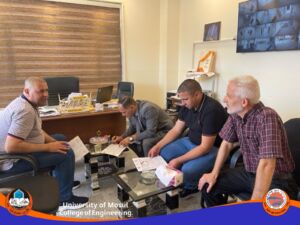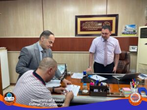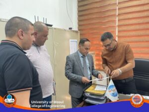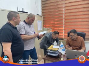 As part of the ongoing efforts of College of Engineering at University of Mosul to enhance academic and administrative performance, Assistant Professor Dr. Omar Mohammed Hamdoon, Dean of College of Engineering, accompanied by Dr. Bassam Ihsan Al-Hafidh, Associate Dean for Administrative Affairs, along with Mr. Ahmed Fathi and Mr. Musab Abduljabbar from the Internal Audit Unit, conducted a field tour of the college departments to monitor the commencement of faculty members for the 2025–2026 academic year.