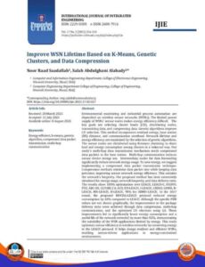 The second paper, in collaboration with Asst. Prof. Dr. Noor Raad, titled “Improve WSN Lifetime Based on K-Means, Genetic Clusters and Data Compression”, was published on August 24, 2025, in the International Journal of Integrated Engineering (Scopus-indexed, Q3).