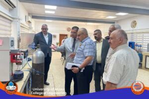 The committee was received by Asst. Prof. Dr. Omar Mohammed Hamdoon, Dean of the College of Engineering, along with the Director of Engineering Consulting Bureau, several heads of departments, and laboratory supervisors. During the visit, the committee reviewed the laboratories’ current conditions, available equipment and instruments, as well as the safety, quality, and operational procedures in place.