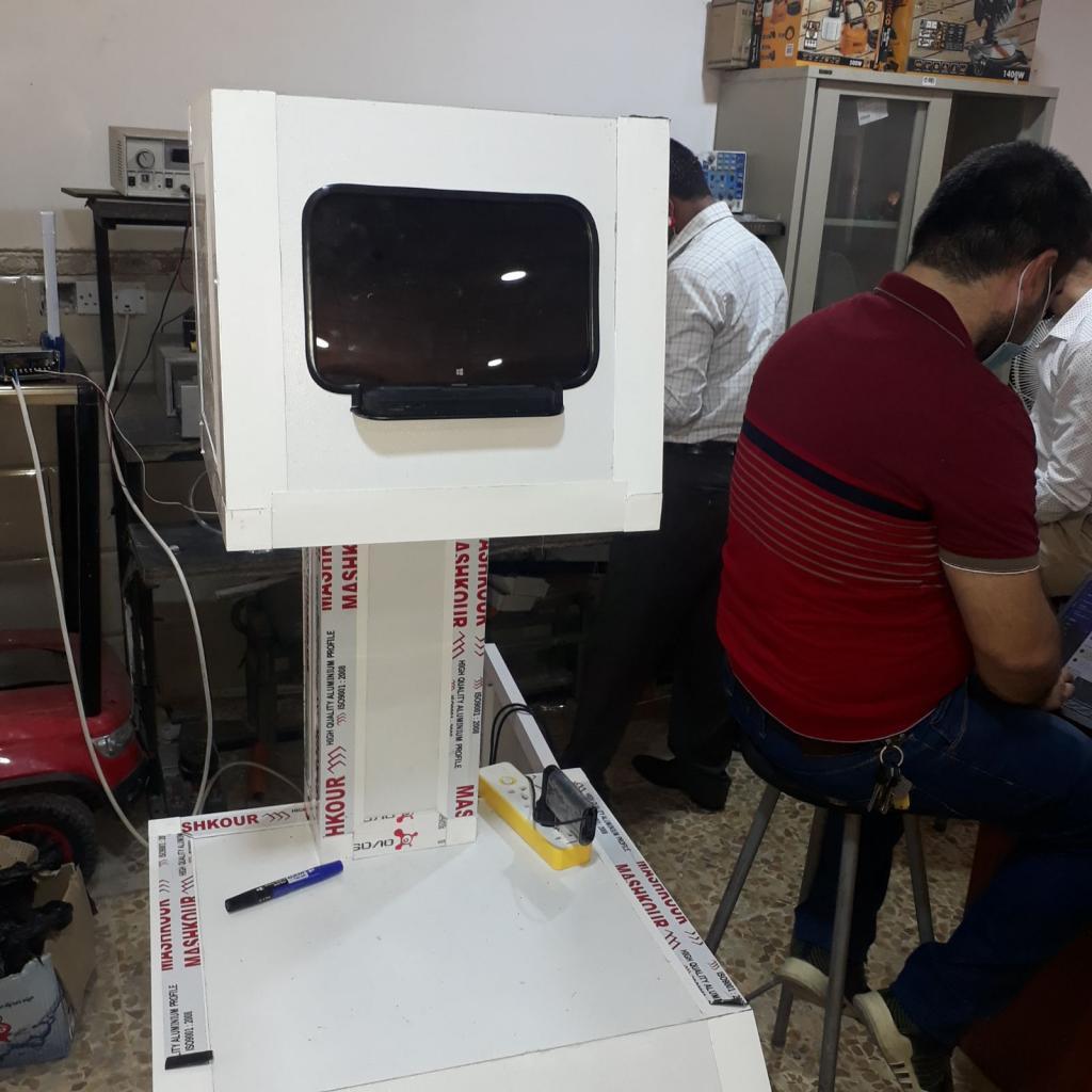 In light of the current circumstance and the increasing demands for redoubling effortsto findadditional respirators for fear of the development of the spread of the Corona epidemic,Iraqi Engineers Union / Nineveh branch in cooperation with college of Engineering formed a volunteer team consisting of a group of engineers to work in the laboratories of College of Engineering /MechatronicsEngineering Departmentto design an artificial respirator that can Its use in emergency situations with patients with difficulty breathing.This inexpensive device works by relying on the pressure of a flexible plastic bag(AmbuBag)By advanced mechanical arms that simulate the movement of the medical specialist’s hand pressing the elastic bag in an emergency.Inaddition, thedevice contains a set ofvalves tocontrol the path of inhale and exhale.The device also contains asetof sensors to measure the pressure and volume of airsuppliedto the patient and display them on a large screen to monitor the patient’s condition continuously.Also this device enables the medical specialist or emergency technician to adjust the volume of the supplied air, the number of breaths per minute and the ratio of inhalation to exhalation through the same screen. It is worth noting that the manufacture of the device in its last stages is now undergo to a set of checks before reaching the final formula.