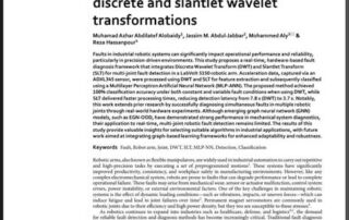 Assistant Professor Dr. Mohammed Azhar Abdulatif Al-Obaidi and his research team have published a pioneering engineering article entitled “Real Time Fault Diagnosis in Industrial Robotics Using Discrete and Slantlet Wavelet Transformations”. The study integrates discrete [Read More]