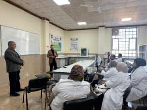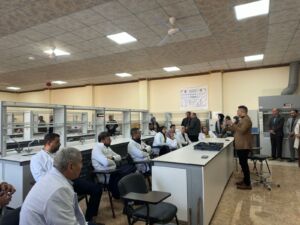 The visit included a visit to the scientific laboratories in the departments of Environmental Sciences and Environmental Technologies and reviewing the methods of conducting water tests chemically and biologically. The most important soil tests and how to conduct them were also addressed.