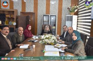 Chaired and attended by the Dean of the College, Assistant Professor Dr. Yusra Majeed Al-Shaker, and the membership of the Dean’s Assistants and Department Heads, the Council of the College of Environmental Sciences held its sixth session for the current academic year, on Monday, December 2, 2024.