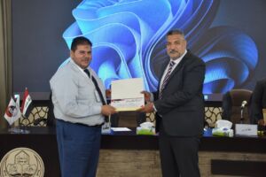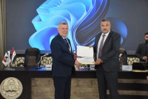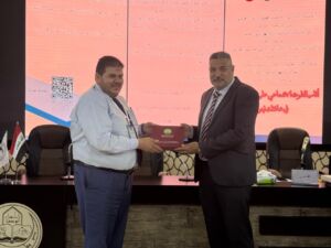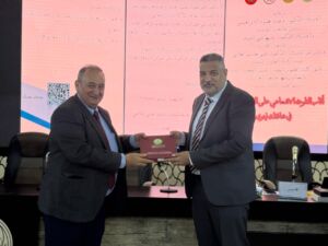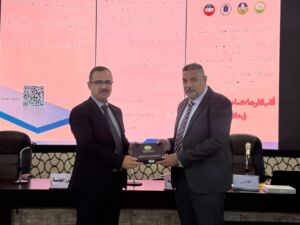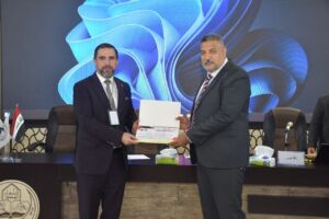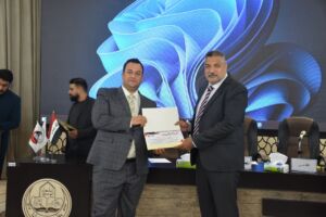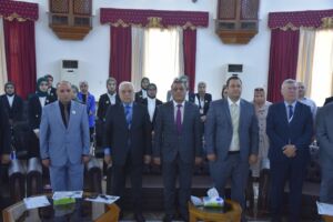 Under the patronage of Professor Dr. Wahid Mahmoud Al-Ibrahimi, President of the University of Mosul, and under the supervision and attendance of Professor Dr. Muthanna Jassim Muhammad Al-Taie, Dean of the College of Environmental Sciences, the College of Environmental Sciences/Department of Environmental Health held the third scientific symposium entitled “The Effects of Radioactive Pollution on Environmental Elements” this morning, Wednesday, May 7, 2025, in cooperation with Al-Hadbaa University. The symposium was attended by Dr. Riyadh Abdullah Al-Taie, Assistant President of Al-Hadbaa University for Scientific Affairs, Assistant Professor Dr. Basil Khalaf Mahmoud, Head of the Academics Syndicate, prominent academic figures from various universities, and a large gathering of researchers and students.