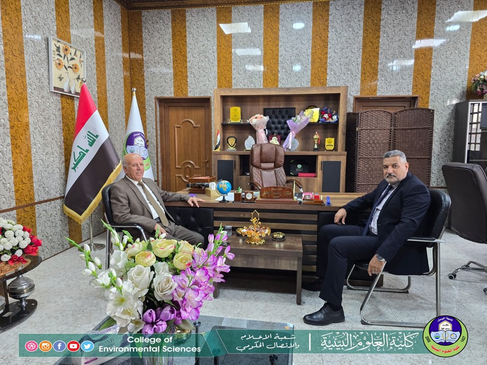 Professor Muwaffaq Yahya Hamdoun, Assistant President for Academic Affairs at Al-Furqan University, visited the College of Environmental Sciences. He congratulated Professor Muthanna Jassim Al-Taie on his appointment as Dean of the College, wishing him success in his duties.