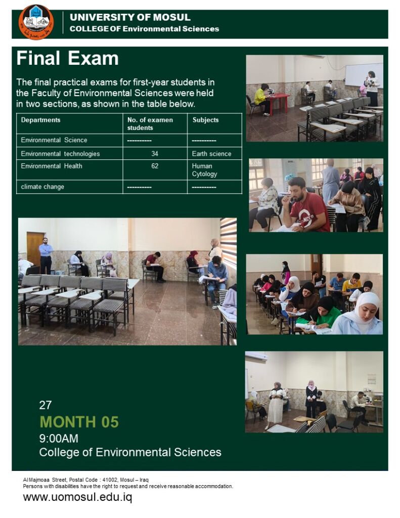 The final practical exams for first-year students in the College of Environmental Sciences were held in two sections, as shown in the table below.