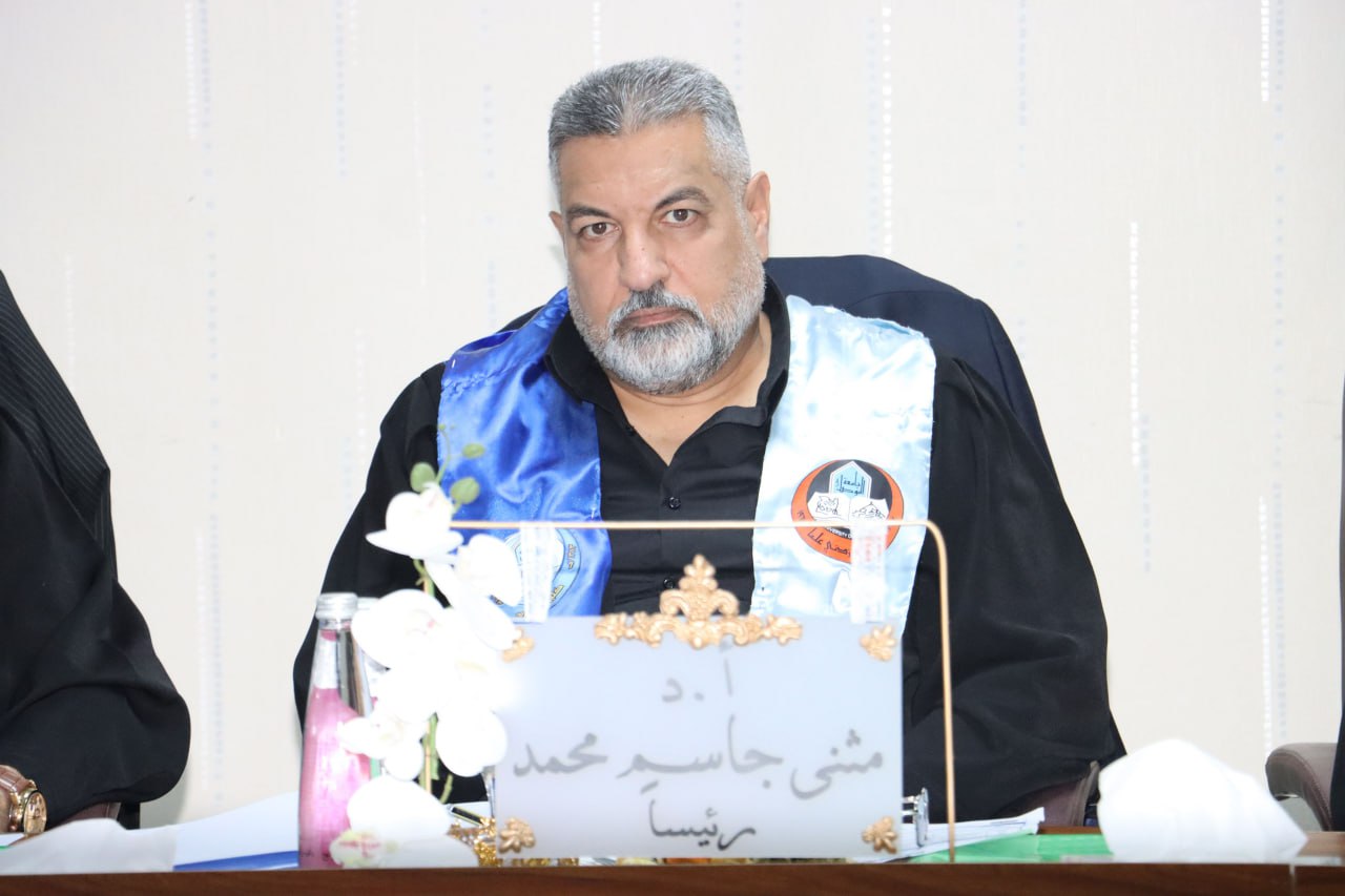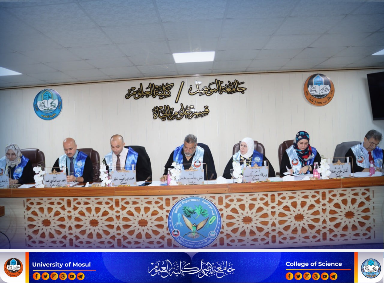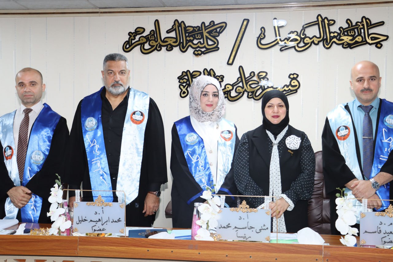 Professor Muthanna Jassim Muhammad Al-Taie, Dean of the College of Environmental Sciences, chaired a doctoral dissertation committee at the College of Science/Department of Life Sciences on Wednesday, August 13, 2025, in the College of Science/Department of Life Sciences. Professor Muhammad Ibrahim Khalil, Head of the Department of Environmental Sciences, participated in the discussion. The committee’s thesis was titled “The Effect of Physical Mutagenesis on the Production of the Enzyme L-Asparaginase from Some Locally Isolated Yeasts and a Study of Some of Its Biological Applications.”