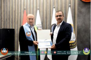 At the end of the discussion, the Assistant Dean for Academic Affairs, Dr. Muhammad Walid Saeed, presented a letter of thanks and appreciation to Assistant Professor Dr. Laith Hassan Omar, University of Mosul / College of Education for Humanities, and to Assistant Professor Dr. Ezz El-Din Saleh Hassan, University of Mosul / College of Petroleum and Mining Engineering, in appreciation of their efforts. For their distinguished scientific efforts.