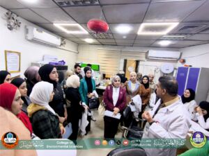 Under the direct guidance of the Dean of the College of Environmental Sciences, Professor Dr. Muthanna Jassim Al-Tai, and the supervision of the Head of the Environmental Health Department, Dr. Mohammed Yahya Alawi, and as part of the department’s ongoing efforts to enhance students’ practical training, second-year students, accompanied by several faculty members, conducted a scientific visit to the Oncology and Nuclear Medicine Hospital.