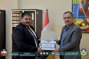 In conclusion, the Dean’s Assistant for Scientific Affairs, Dr. Mohammed Waleed Saeed Al-Abbasi, presented letters of appreciation to Assistant Professor Dr. Mohammed Mahmoud Younis of the College of Science, Department of New and Renewable Energy, and Assistant Professor Dr. Abdul Khaliq Ayoub Suleiman of the College of Science, Department of Physics.