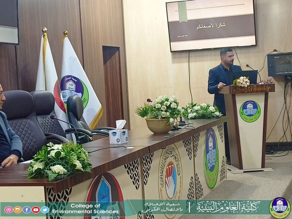 2024-12-12T19:27:23+00:00Under the patronage of the Dean of the College of Environmental Sciences, Dr. Yusra Majeed Al-Shaker, and under the supervision and attendance of the Assistant Dean for Administrative and Financial Affairs, Dr. Shaima Khalil Abdullah, and the Head of the Department of Environmental Sciences, Dr. Muhammad Ibrahim Khalil, and within the series of seminars for graduate students in the Department of Environmental Sciences, the department held two seminars on Wednesday, December 11, 2024 in the college discussion hall, the first was given by master's student Ahmed Issa Wahbi entitled "Evaluation of the molecular and biochemical impact of pollutants emitted from [Read More]