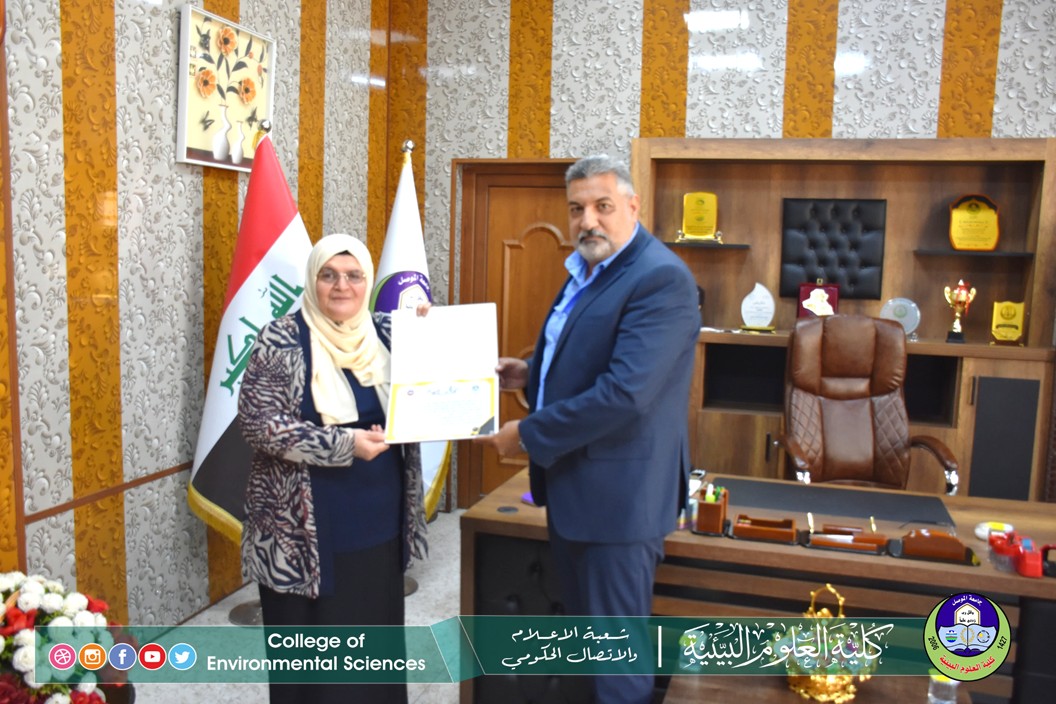 The President of the University of Mosul, Professor Wahid Mahmoud Al-Ibrahimi, awarded a letter of thanks and appreciation to a group of faculty members from the College of Environmental Sciences for publishing scientific research [Read More]
