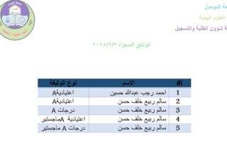 The documents were completed at the Student Affairs and Registration Department as shown in the table below. September 3 , 2025 University of Mosul / Sustainable University Department of Media and Government Communication #College_of_Environmental_Sciences
