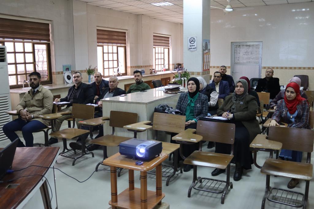 Today, Wednesday, November 30, 2022, the lectures of the “Laboratory Tests and Occupational Safety” course held by the Environment Research Center continued, and it included three lectures and the course participants’ visit to the laboratories of the Environmental Research Center, where the first and second lectures were by Dr. The title is “Water Microbiology” and the second is “Some types of pathological bacteria present in the water”. Then the participants in the course were directed to visit the center’s laboratories and to see the equipment and laboratory tests conducted by the center. After that, Dr. Riyadh Mahmood Salih (senior lecturer at the Environment Research Center) gave a lecture entitled “Occupational Safety in Laboratories”, which won the impression of the participants in the course.