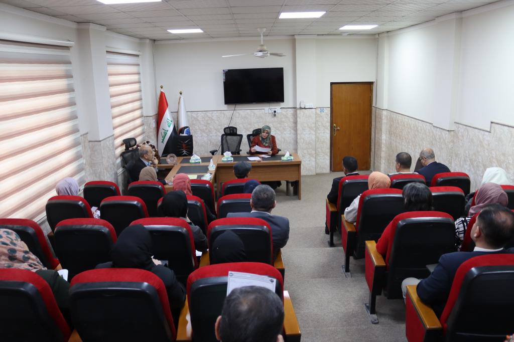 The Chair of the Sustainable Development Committee, Dr. Saba Khair Al-Din Al-Taei, chaired the meeting of the ladies and gentlemen liaison members from the colleges and centers of the University of Mosul on Wednesday, the first of March , 2023. The meeting focussed on the pursuit of achieving the seventeen goals approved by the General Assembly of the United Nations and adopted by the Iraqi government. The faculties and research centers have been informed through the members of the association with the festival program and what is required of each college and center in order to provide all the requirements required for the exhibition and festival to appear in a way that reflects a bright image of our university The meeting was attended by the members of the Standing Committee for Sustainable Development.