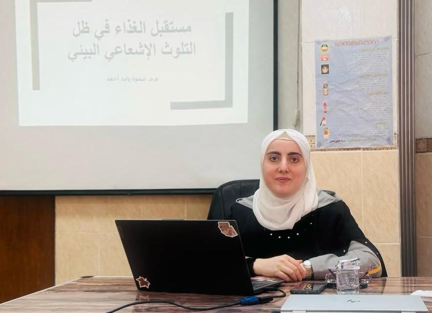 The Sustainable Food Security Course continues on its fourth day, Wednesday, April 30, 2025. The first lecture, delivered by Assistant Professor Safwa Walid Ahmed, was titled “The Future of Food in Light of Environmental Radioactive Contamination.” She addressed the relationship between radioactive contamination and food security, focusing on how nuclear and environmental radiation affect food safety, both plant and animal, and the direct threat this poses to human health and the sustainability of food systems.