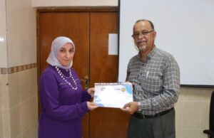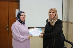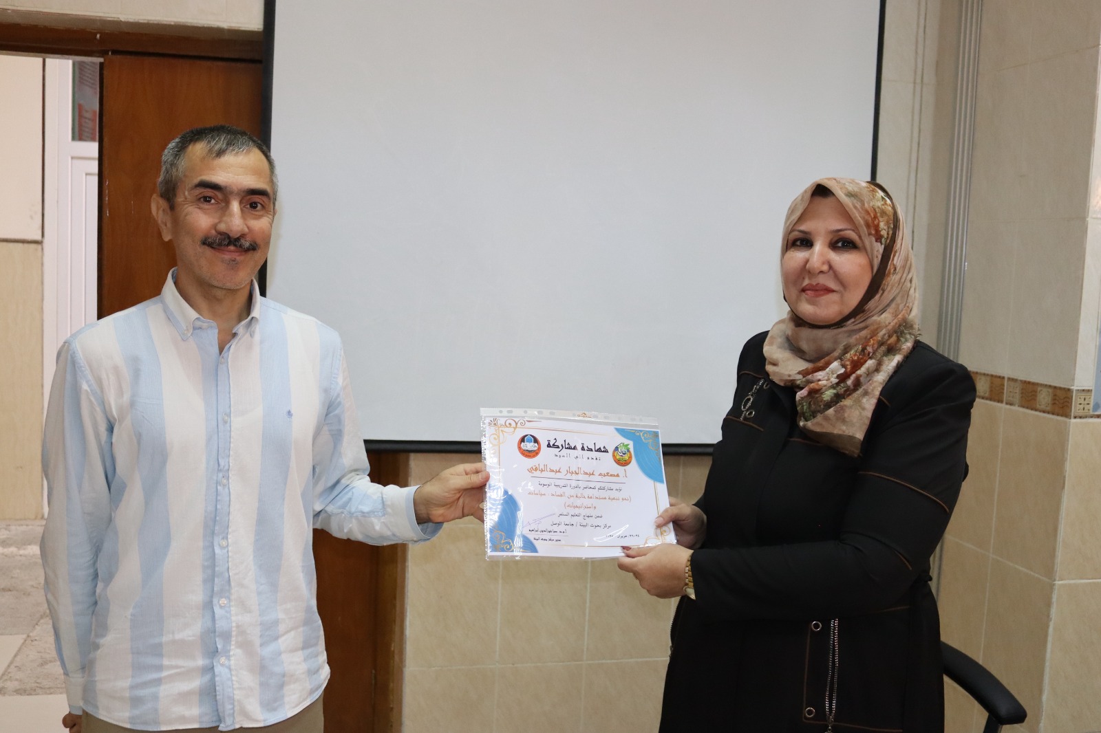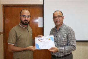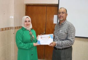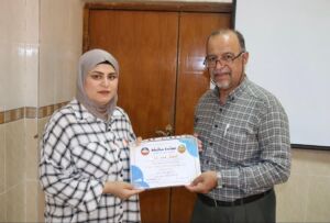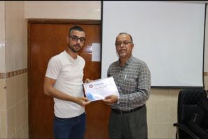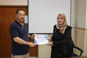 The course concluded with the distribution of certificates of participation to the participants on Sunday, June 29, 2025. The certificates were presented by Assistant Professor Dr. Saba Khair El-Din Ibrahim, Director of the Center, and Assistant Professor Taha Ahmed Al-Tayyar, Head of the Environmental Information Systems Department. They praised the level of interaction and scientific contributions that enriched the discussions and contributed to the success of the course and the achievement of its objectives
