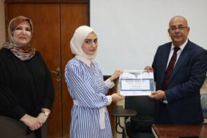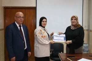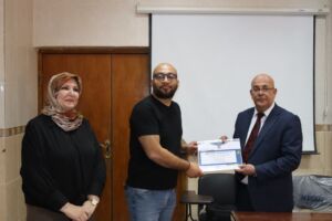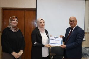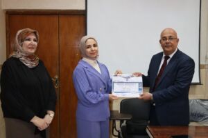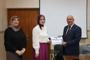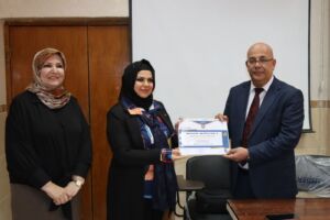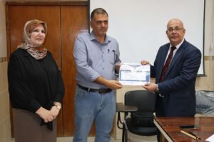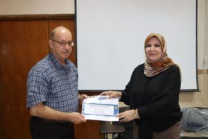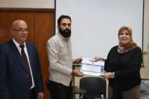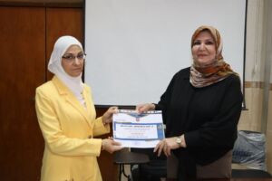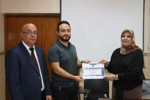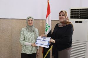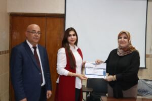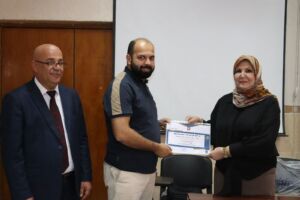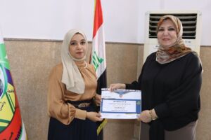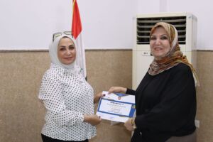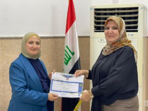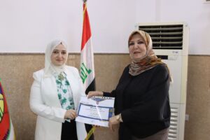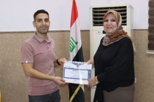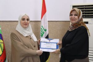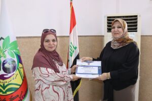 At the conclusion of the event, Assistant Professor Dr. Saba Khair Al-Din Ibrahim, Director of the Center, and Mr. Omar Khader Jumaa Shalawi, Director of the Nineveh Environment Directorate, distributed certificates of participation to the attendees, commending their active engagement and constructive interaction throughout the course