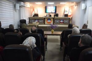 Our Fine Arts College (Department of Studies and Planning) held an educational lecture entitled “Publications of the Mosul Studies Center and Their Convergence with the Specializations of the College of Fine Arts” on Thursday, January 30, 2025. Assistant Professor Dr. Muhammad Nizar Al-Dabbagh from the Mosul Studies Center presented at this scientific and cultural forum. His lecture touched on traditional folkloric artistic topics such as proverbs, wisdom, fashion, customs, traditions, and dialects, which constitute fertile material for the arts of singing, drawing, writing, and theatrical performance. At the end of the lecture, the visiting guest was honored with a letter of thanks and appreciation from the Dean of the College of Fine Arts, Professor Dr. Nashat Mubarak Saliwa.
