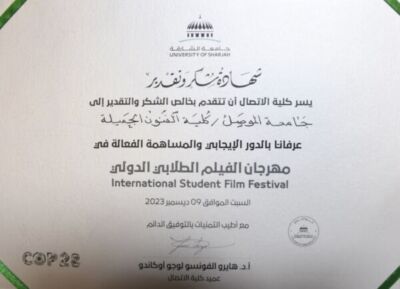 “Thank you and appreciation from the University of Sharjah for taking part in the International Student Film Festival.”