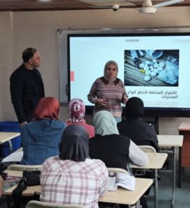 As part of its guidance lecture series, the Fine Arts Department held a lecture titled “What Are the Most Dangerous Types of Modern Drugs?” aimed at raising awareness among second-year students in the department on Monday, March 17, 2025. The lecture was delivered by Assistant Professor Dr. Alwan Khalif Mahmoud and Eng. Muhammad Nizar Abdul Latif. The lecture aimed to educate students about the dangers and harms of drugs and their negative repercussions on society.